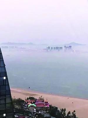厦门晚报报道,海面上雾气笼罩,一栋栋高楼耸立其中,这难道就是传说中的“海市蜃楼”?昨天傍晚,在观音山商务区的不少上班族称看见了海市蜃楼。